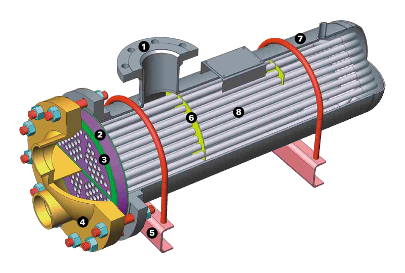 - Tubos en U y deflectores diseñados para maximizar el rendimiento de la transferencia de calor.